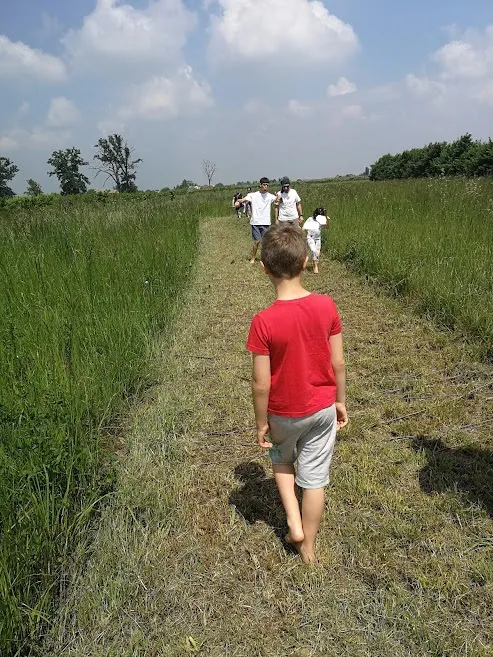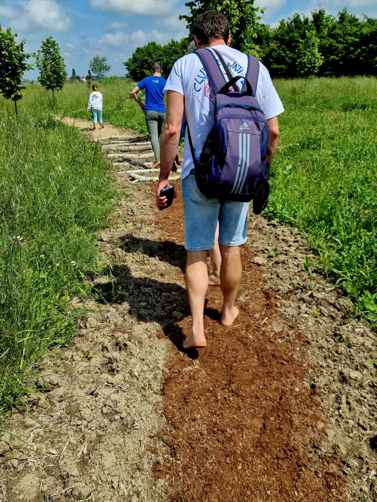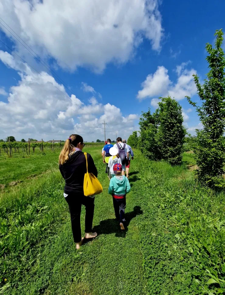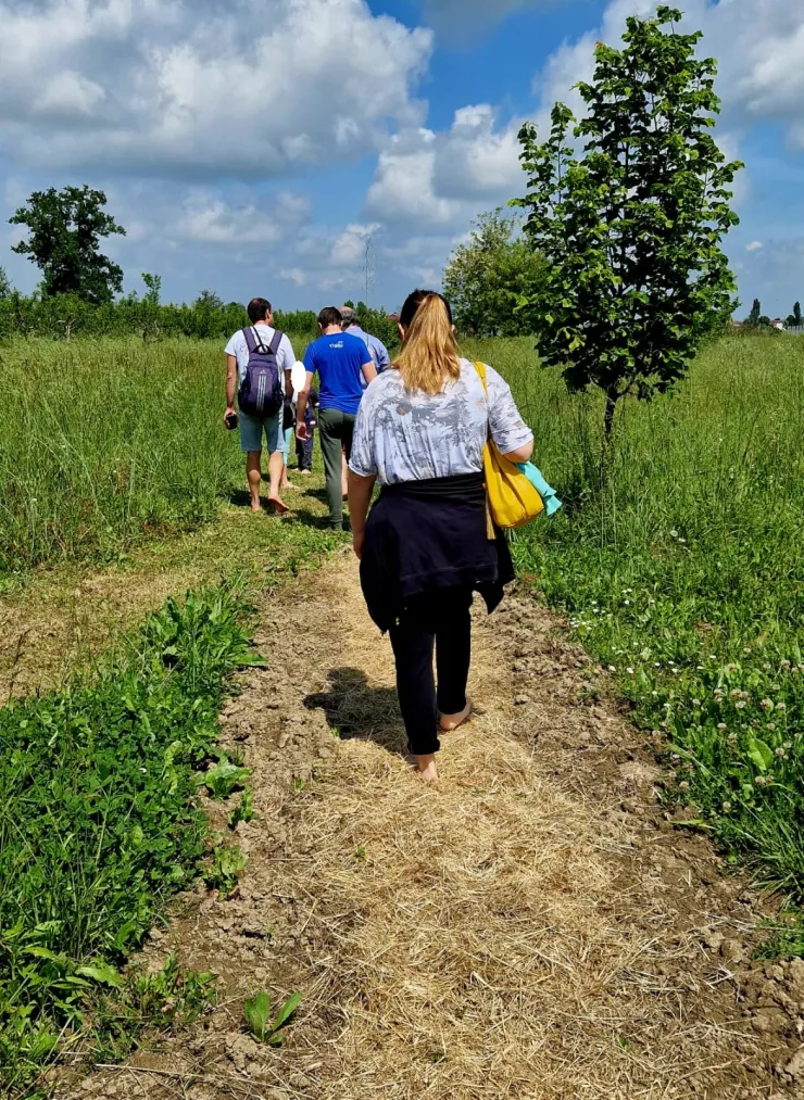 Si cammina addentrandosi su un percorso in mezzo a gelsi, aceri, meline, carpini e acacia dove si può toccare con i piedi nudi pezzi di terreno rivestito dalla torba, sassolini, cippato e ramoscelli: ascolterai i rumori della natura e ti dimenticherai della velocità. Non è un dire perché e veramente così. Prova tu stesso!!!